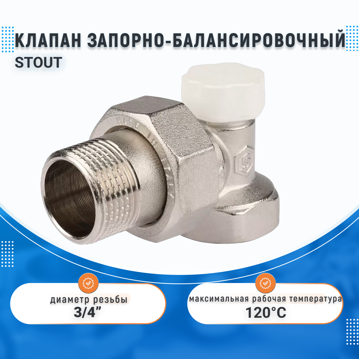 Клапан запорно-балансировочный STOUT SVL-1156-000020 угловой 3/4"