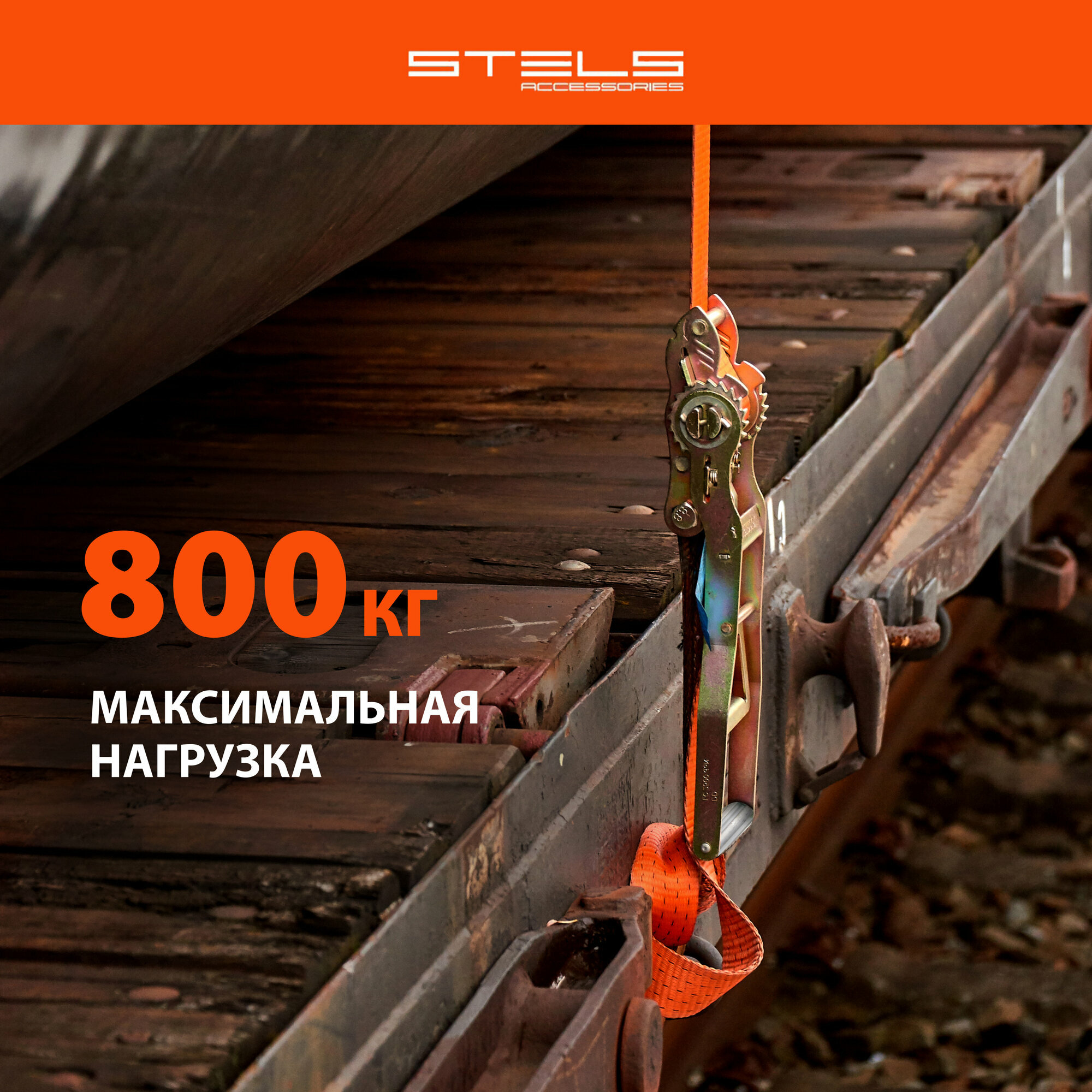 STELS 54386 Стяжка груза с двумя крюками и трещоткой, дина - 8 м, 50 мм