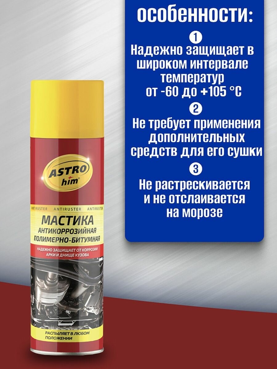 Мастика антикоррозийная astrohim полимерно-битумная, серия antiruster, аэрозоль 650 мл ac-491