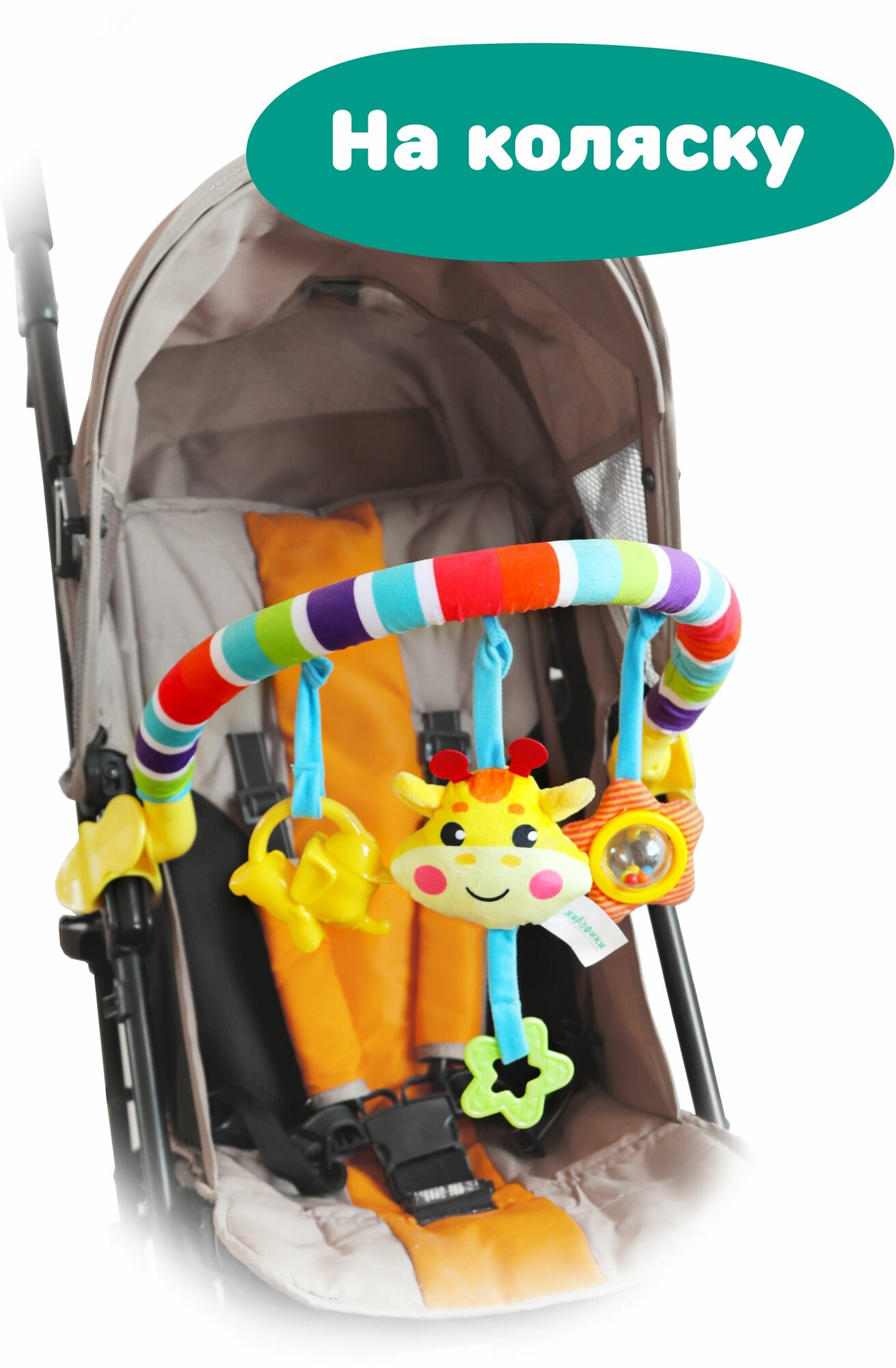 Развивающая дуга "Жирафик": 4 съемных игрушек, крепление прищепка, 3в1 кровать, коляска, автокресло Жирафики 939625