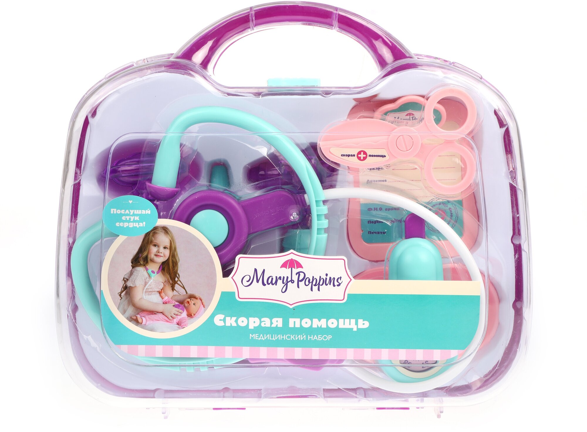 Медицинский набор Mary Poppins "Скорая помощь" в чемоданчике 9 предметов, фиолетовый (453149)