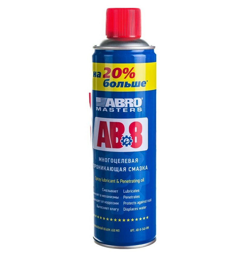 Смазка проникающая (жидкий ключ) ABRO Masters AB-8, многоцелевая, антикоррозийная, аэрозоль 450мл, арт. AB-8-R