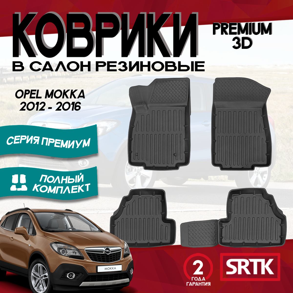 Коврики резиновые в салон для Опель Мокка/ Opel Mokka (2012-2016) 3D PREMIUM SRTK (Саранск) комплект в салон