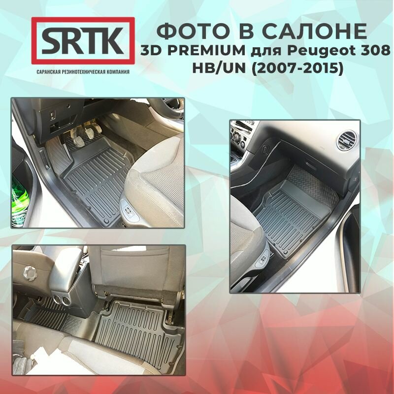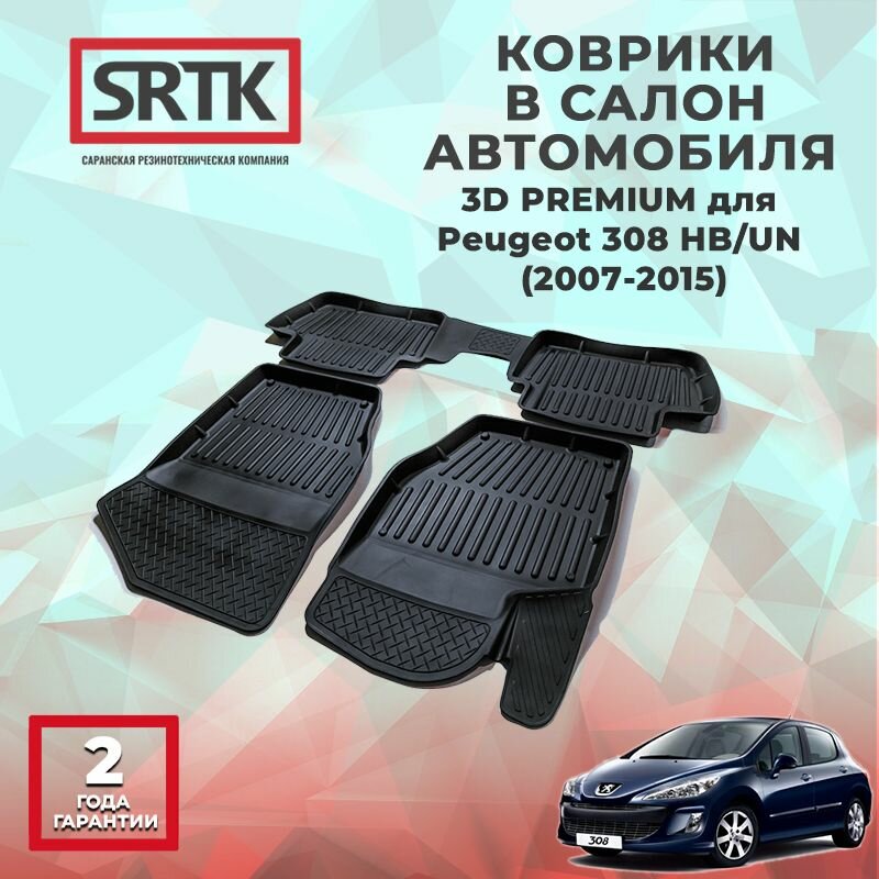 Коврики резиновые для Пежо 308 Хэтчбек Универсал (2007-2015)/Peugeot 308 (2007-2015) 3D PREMIUM SRTK (Саранск) комплект в салон