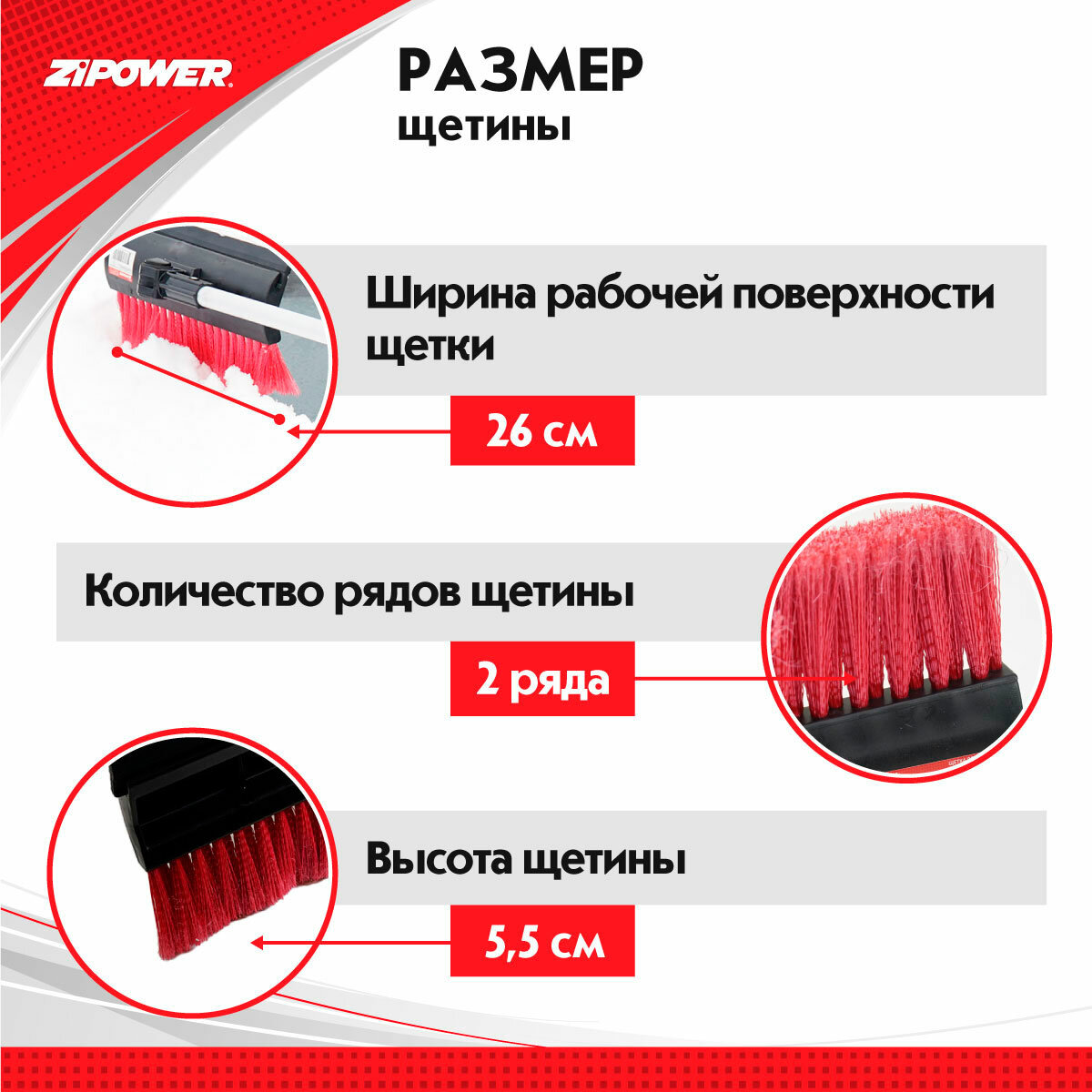 Щетка от снега и льда ZIPOWER телескопическая 91-140 см, со скребком