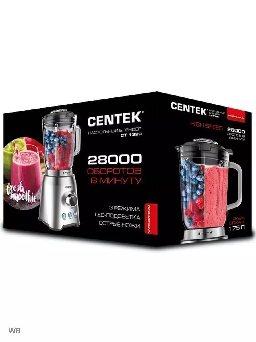 Блендер настольный Centek CT-1329 <2000 Вт> Стекл стакан, плавная рег. скорости, 3 режима + импульс