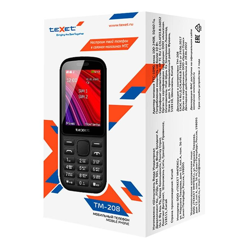 Купить TeXet TM-208, 2 SIM, черный / красный