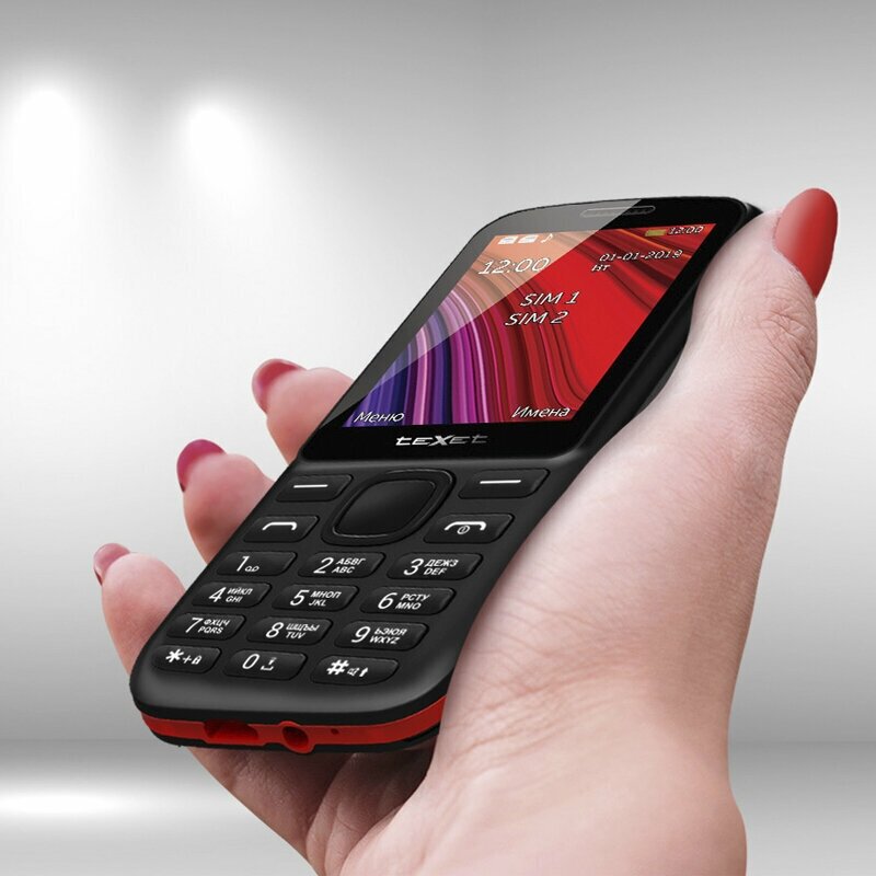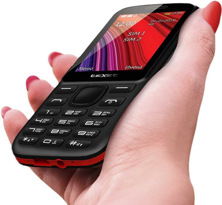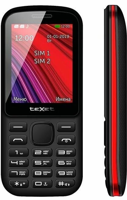 TeXet TM-208, 2 SIM, черный / красный интересное: