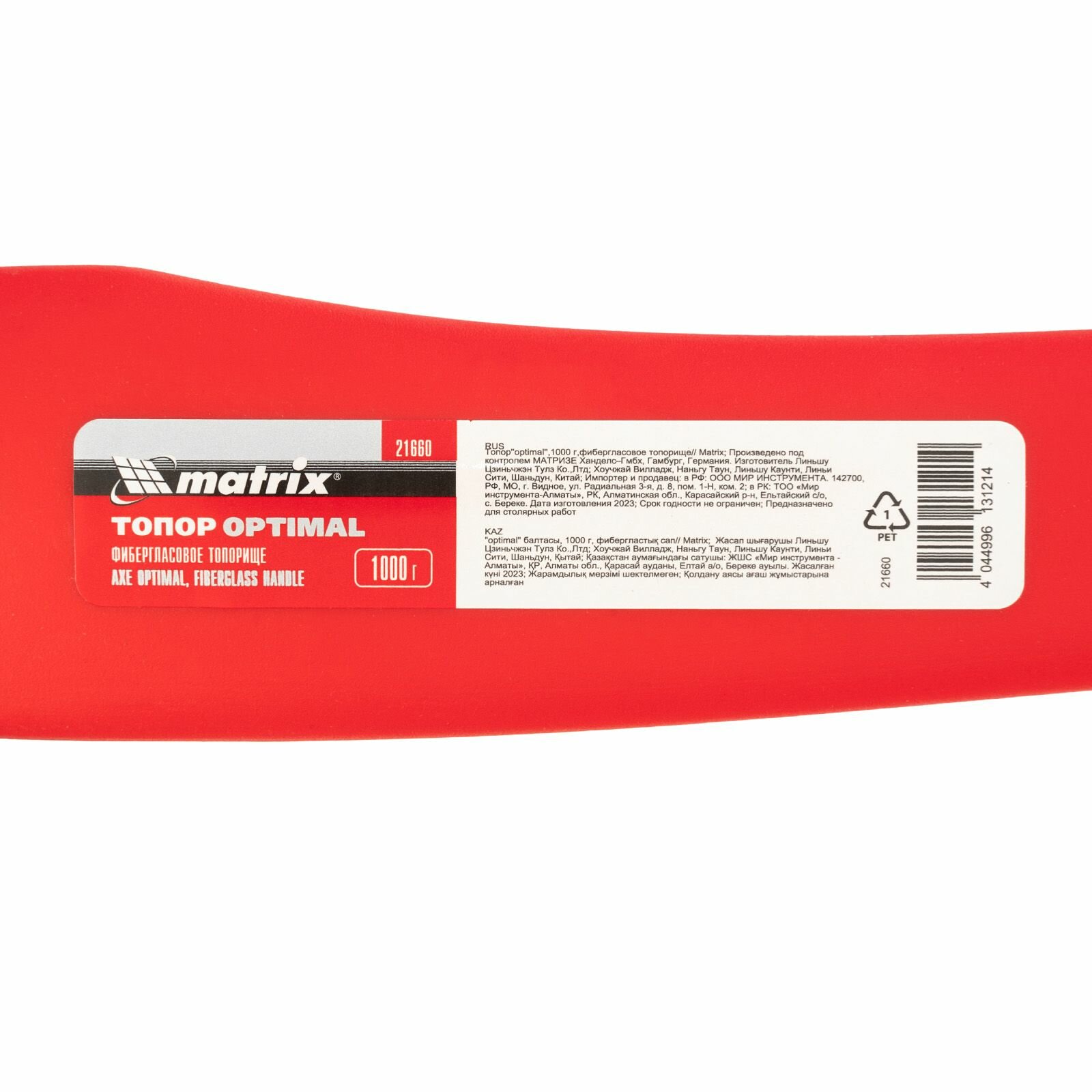 Топор MATRIX optimal 21660, 1000 г, 468 мм, кованный, фибергласовое топорище MATRIX .