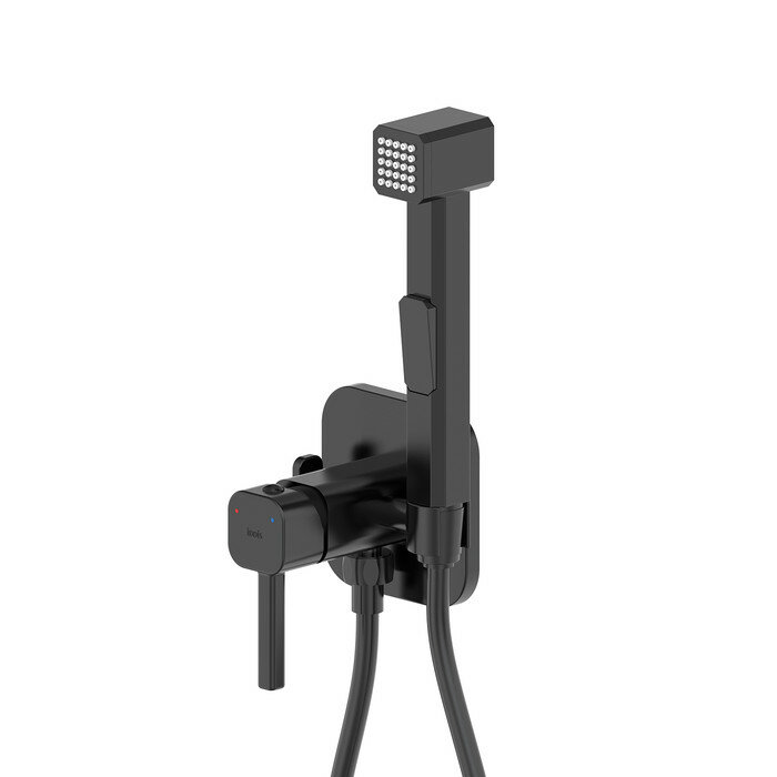 Встраиваемый смеситель IDDIS с гигиеническим душем матовый черный (004BLS0i08)