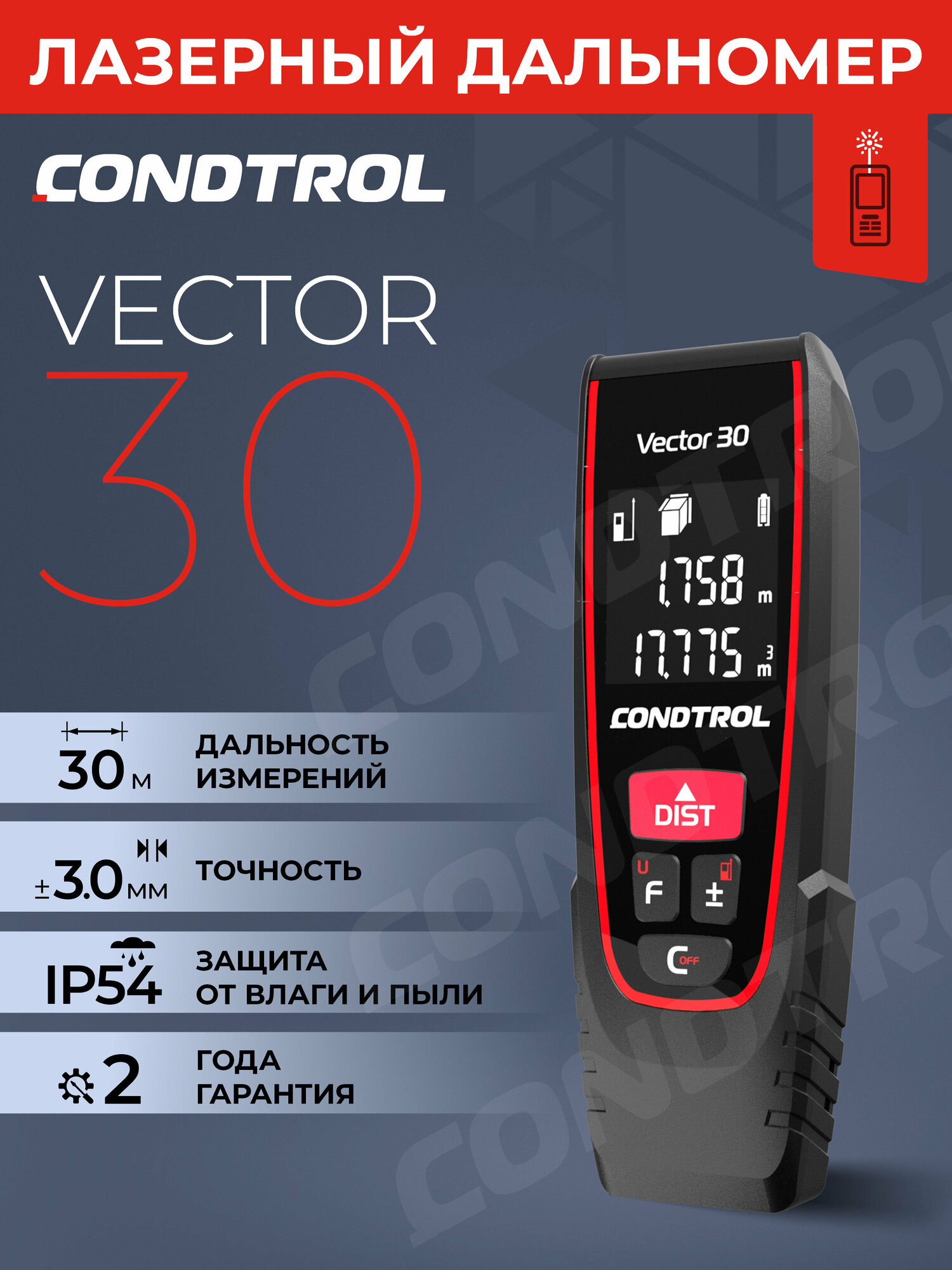 Кондтрол Вектор 30 лазерный дальномер / CONDTROL Vector 30 лазерный дальномер (30м)