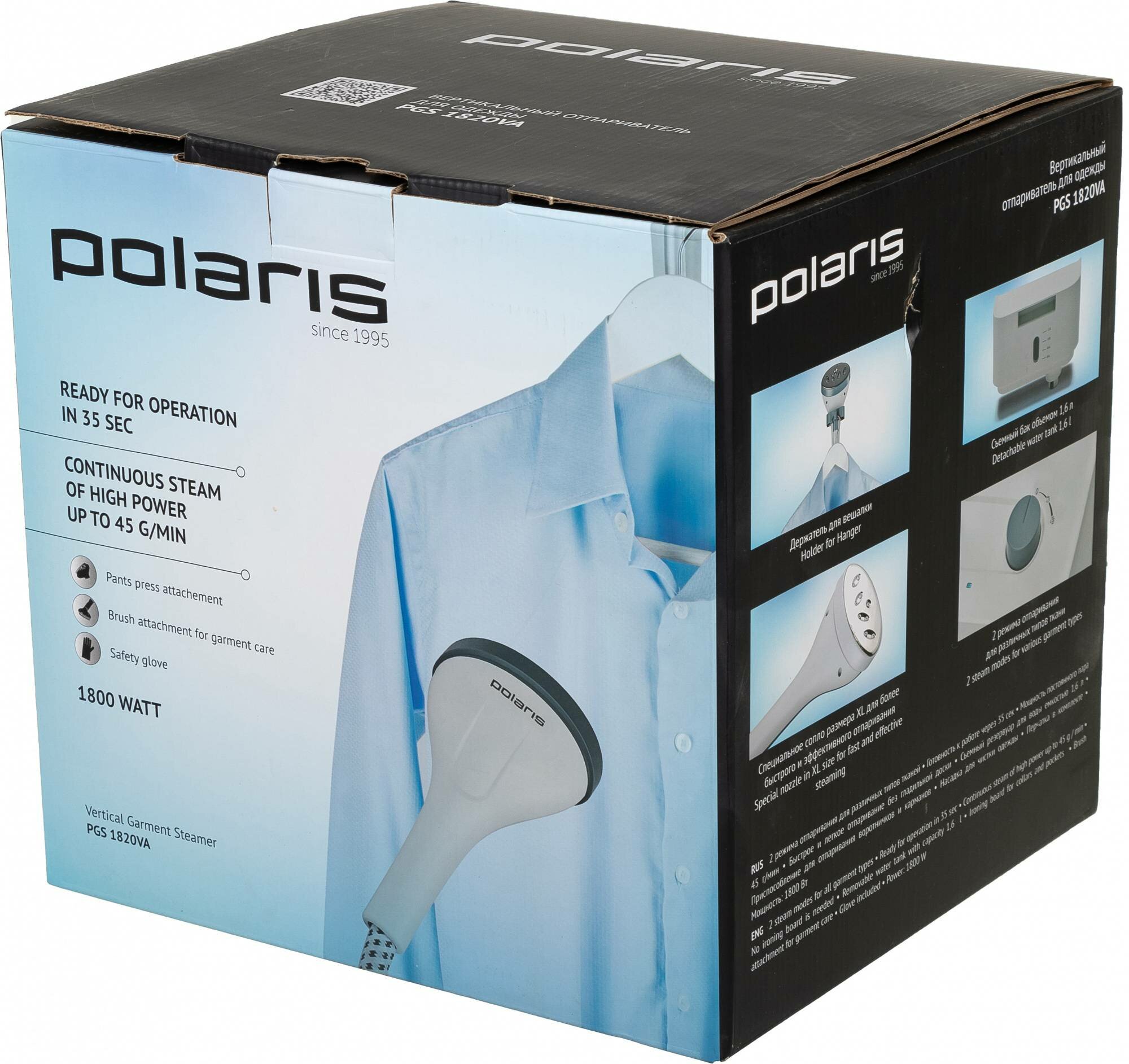 POLARIS 1082977 1082977_Отпариватель вертикальный Polaris PGS 1820VA, 1,6 л, 1800 Вт,45 г/мин,белый 1шт