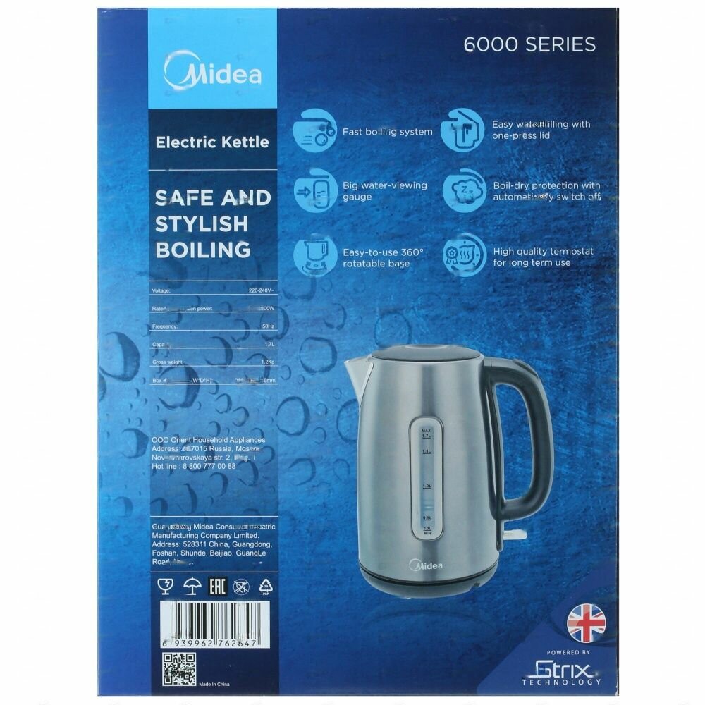 Чайник Midea MK-8026 1.7л. 2.2 кВт металл, нержавеющая сталь/черный (MK-8026)