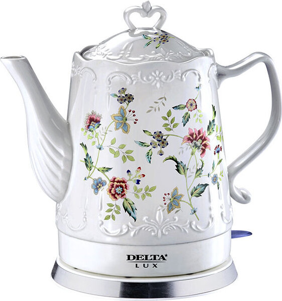 Чайник электрический 1500 Вт, 1,5 л, корпус из фарфора DELTA LUX DL-1239 "Цветы"