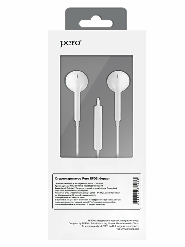 Наушники PERO EP02 белые (4603740875677), 1883086