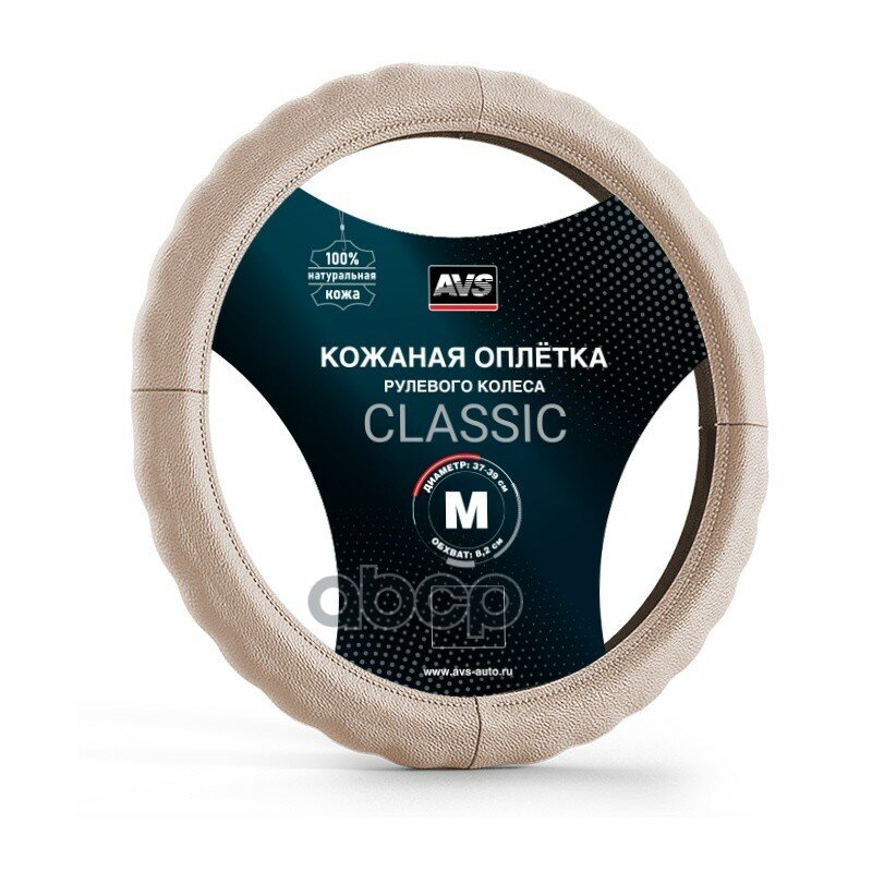 Оплетка на руль M "AVS" натуральная кожа, бежевый (GL-165M-BE) AVS A78940S