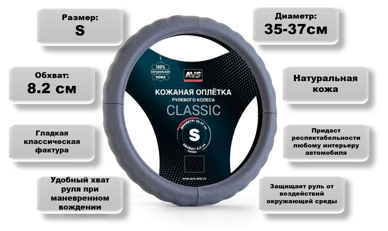 Оплетка на руль (НАТ. Кожа) AVS GL-165S-GR (размер S, серая) Avs Industrial Co A78654S