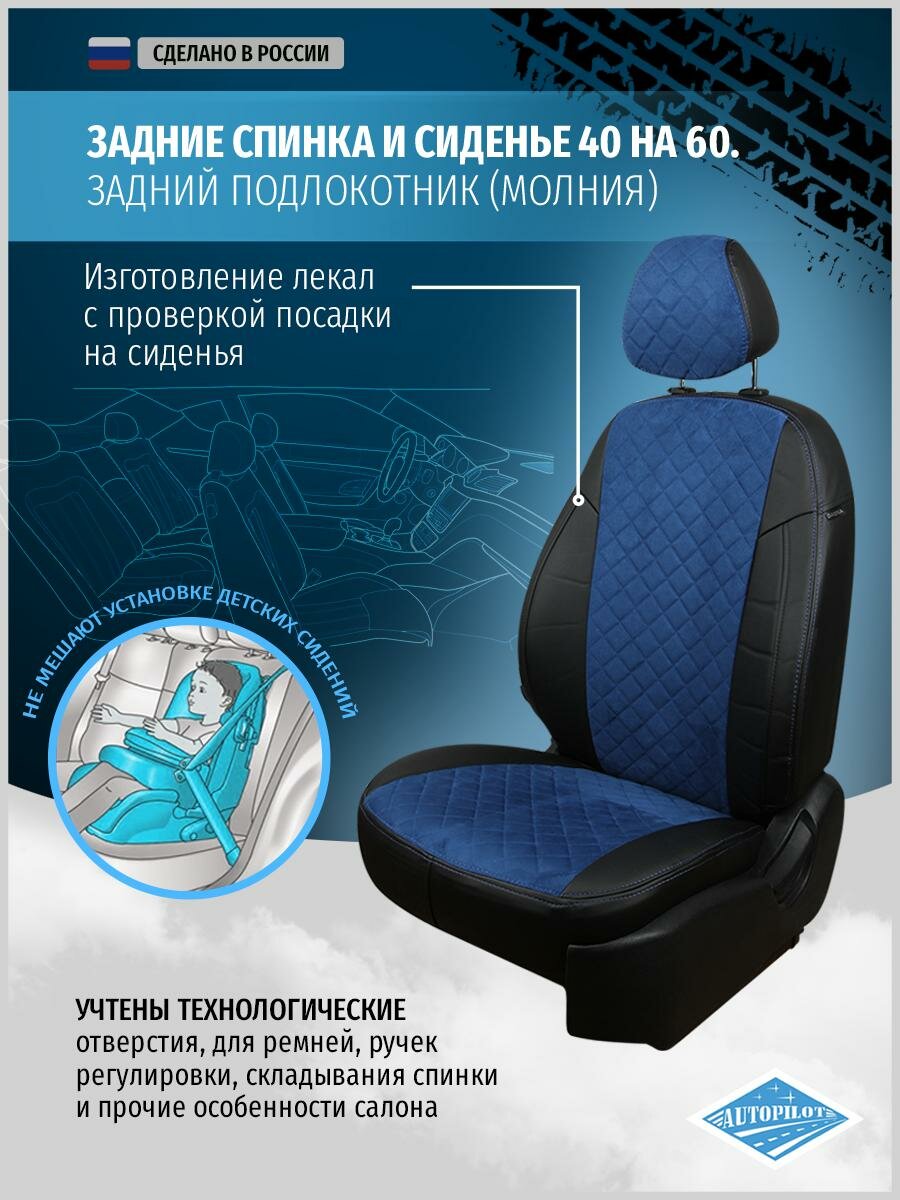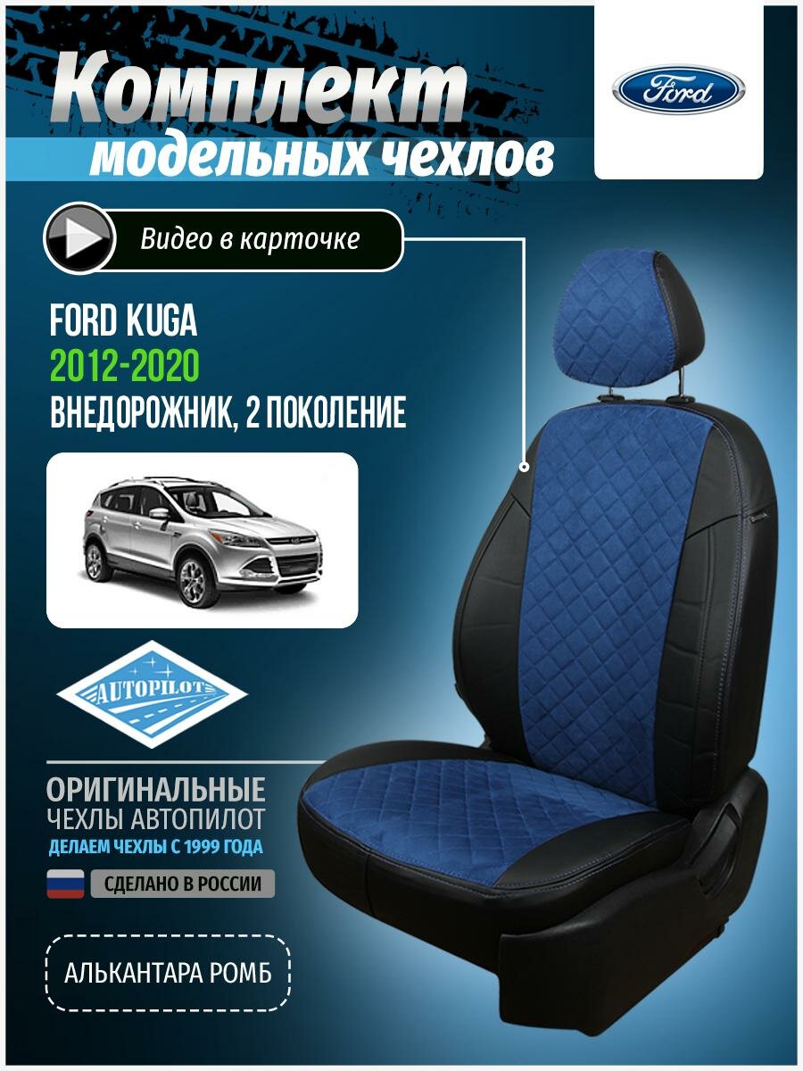 Комплект чехлов АВТОПИЛОТ из алькантары для Ford Kuga trend, ромб, черный/синий