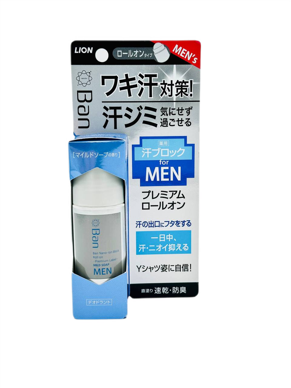 LION Дезодорант-антиперспирант ролик антибактериальный "Ban Premium Label" муж, без ар. 40мл