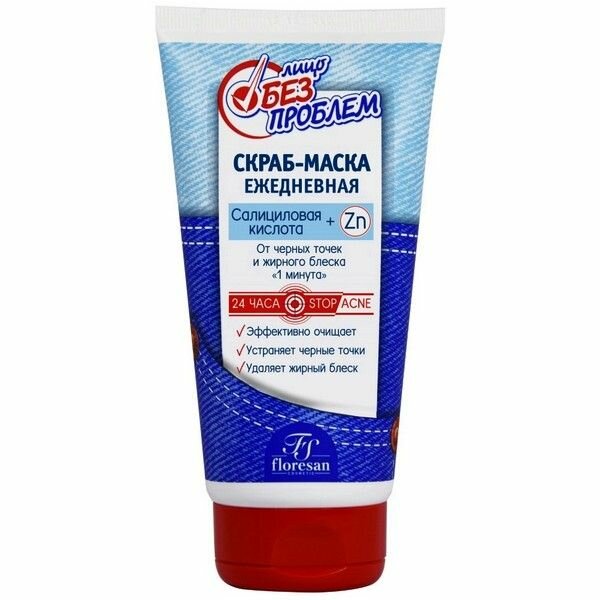 Купить Floresan Лицо без проблем Скраб-маска ежедневная от черных точек и жирного блеска 1 минута, 150 мл,