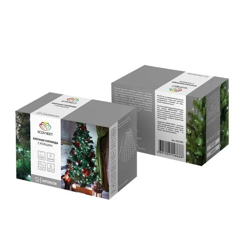 Гирлянда NEON-NIGHT елочная с кольцом, 235-076, 7 нитей, 1 шт. в наборе, 1.5 м, 105 ламп, белый