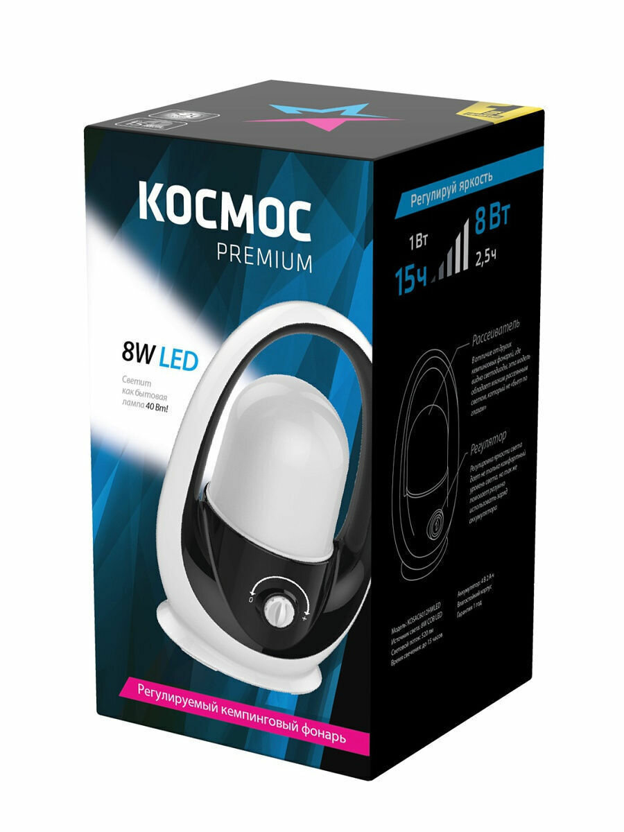 Фонарь кемпинговый аккумуляторный Космос 6012W, регулировка яркости Белый/черный