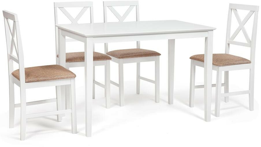 Обеденный комплект TetChair Хадсон (стол обеденный + 4 стула), дерево, мдф, белый, ткань