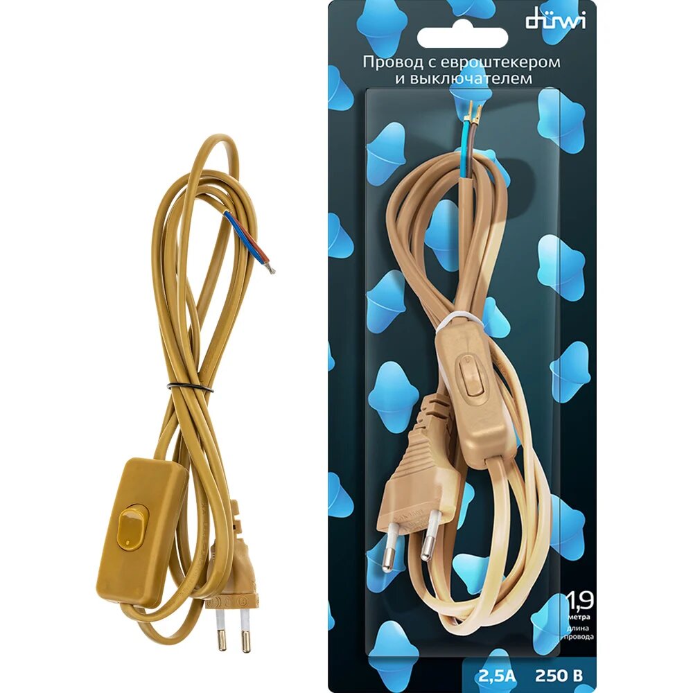 Купить Провод с евроштекером и выключателем 1.9м H 03 VV-F 2х0.75кв.мм 2.5А зол. Duwi 24516 2