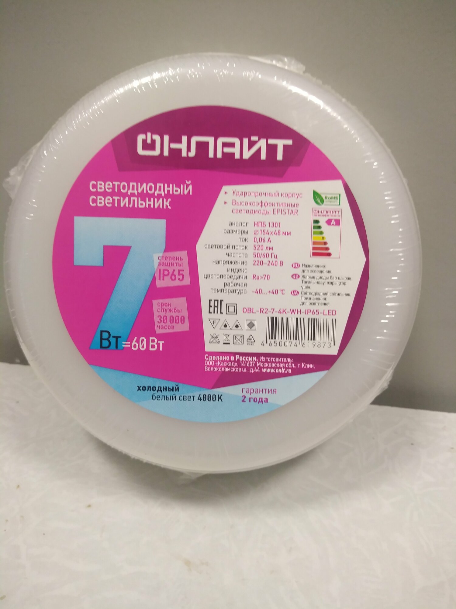 Светильник энергосберегающий онлайт 61 987 OBL-R2, 7 Вт, дневной свет 4000К, IP65