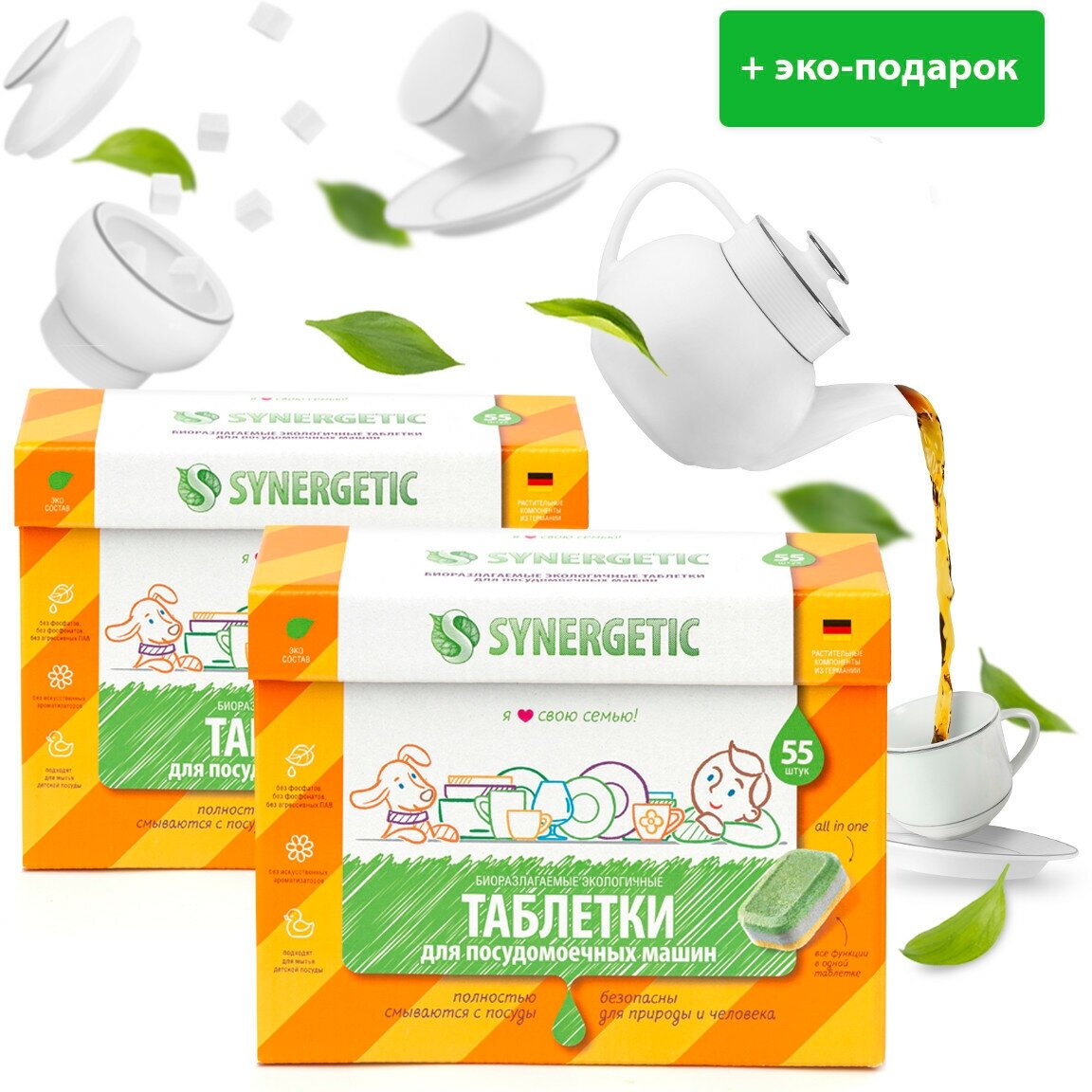 Synergetic таблетки для посудомоечной машины, 55 шт. в 2 уп.