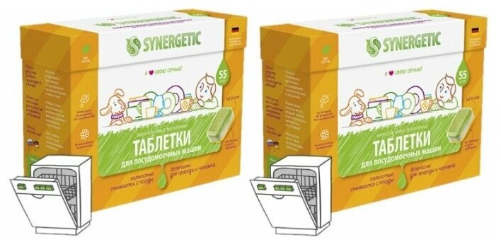 Ниже Вы можете прочитать отзывы на 2 шт.- SYNERGETIC Таблетки для посудомоечных машин, бесфосфатные, экологичные, 55 + 55 шт., ознакомится с подробными характеристиками, посмотреть интересные обзоры и фотографии на 2 шт.- SYNERGETIC Таблетки для посудомоечных машин, бесфосфатные, экологичные, 55 + 55 шт..