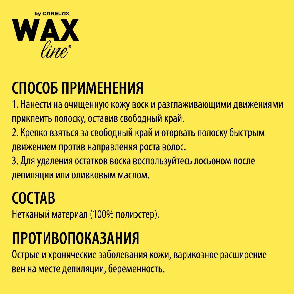 Carelax Полоски для депиляции WAX line 101 г 100 шт. белый интересное: