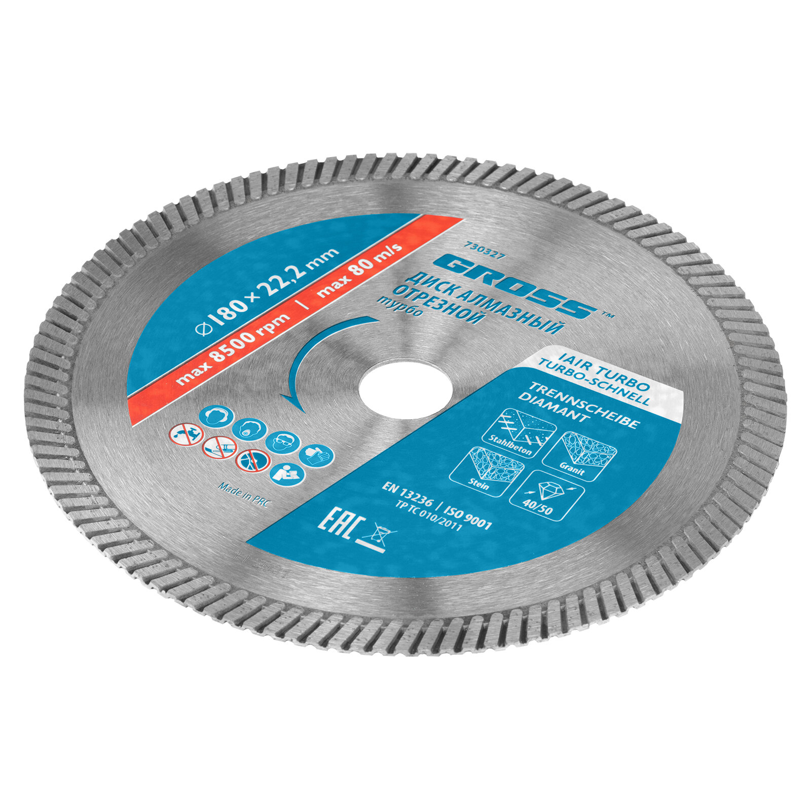 Диск алмазный GROSS 730327, ф180х22,2мм, турбо, сухое резание