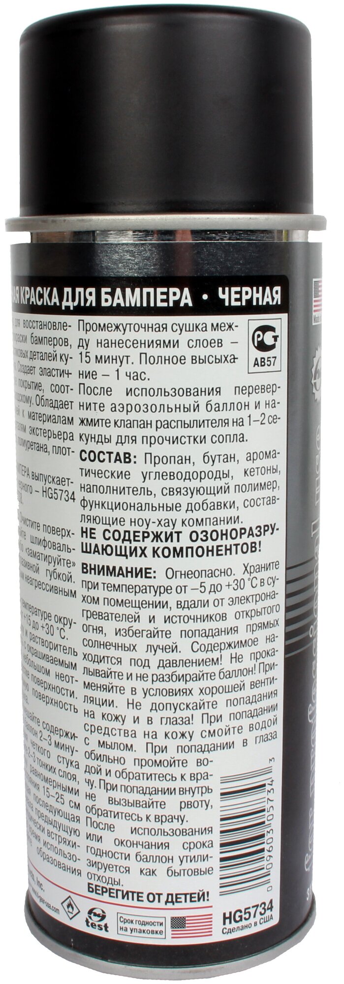 Краска Спрей Для Бампера Эластичная Черная Hg5734, 311 Мл Hi-Gear арт. HG5734