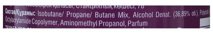 | Плюсы: | Хороший лак. Уровень фиксации: 5-сильный или 5+ сверхсильный. Блестки разного цвета. Использовали даже для одежды: хватает на вечер (черное платье немного опрыскали лаком - стало черное с блеском. Главное держать на расстоянии не менее 30 см, тогда распыление равномерное) |