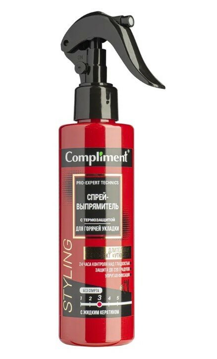 Compliment Pro-Expert Technics Спрей-выпрямитель с термозащитой для горячей укладки, с жидким кератином (3/5), пэт спрей 200 мл