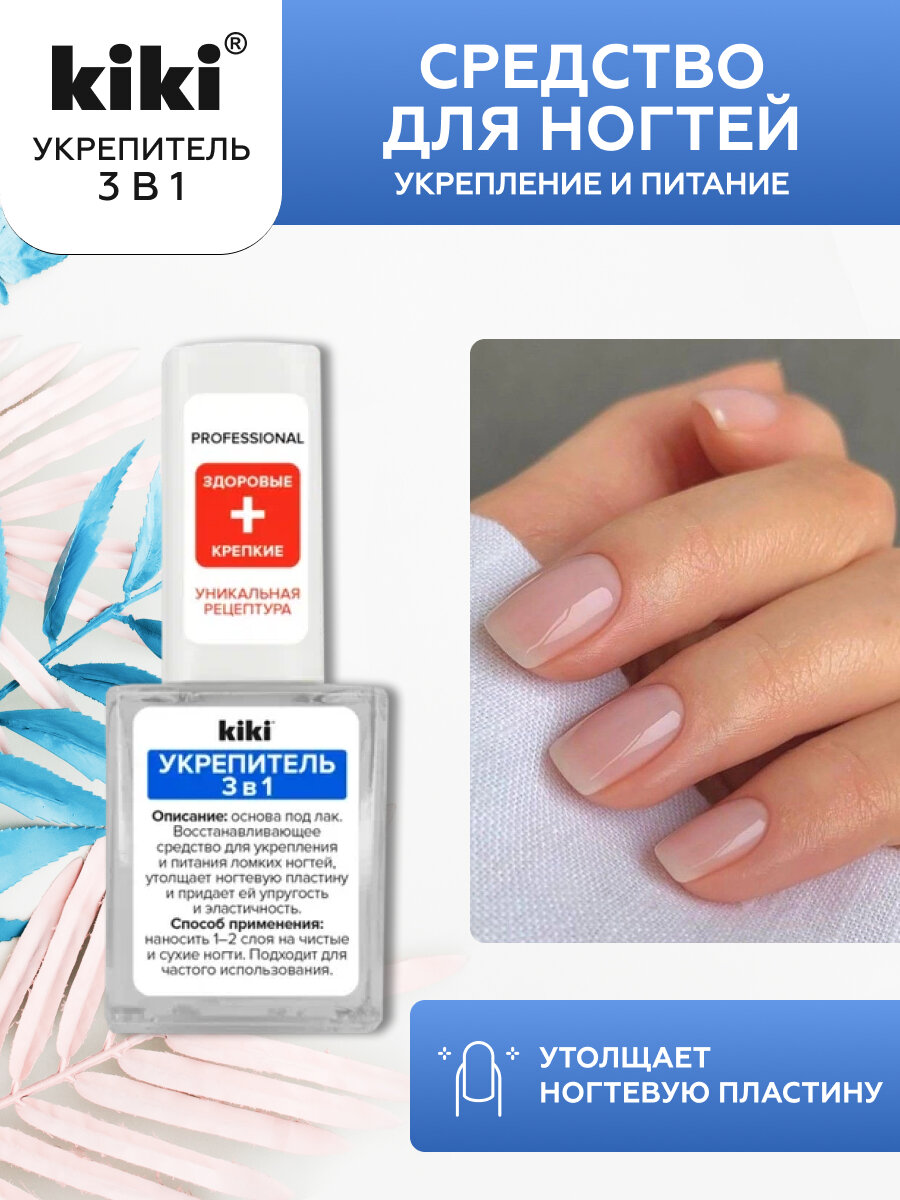 Укрепитель для ногтей KIKI 3 в 1, средство для ухода и питания ногтей