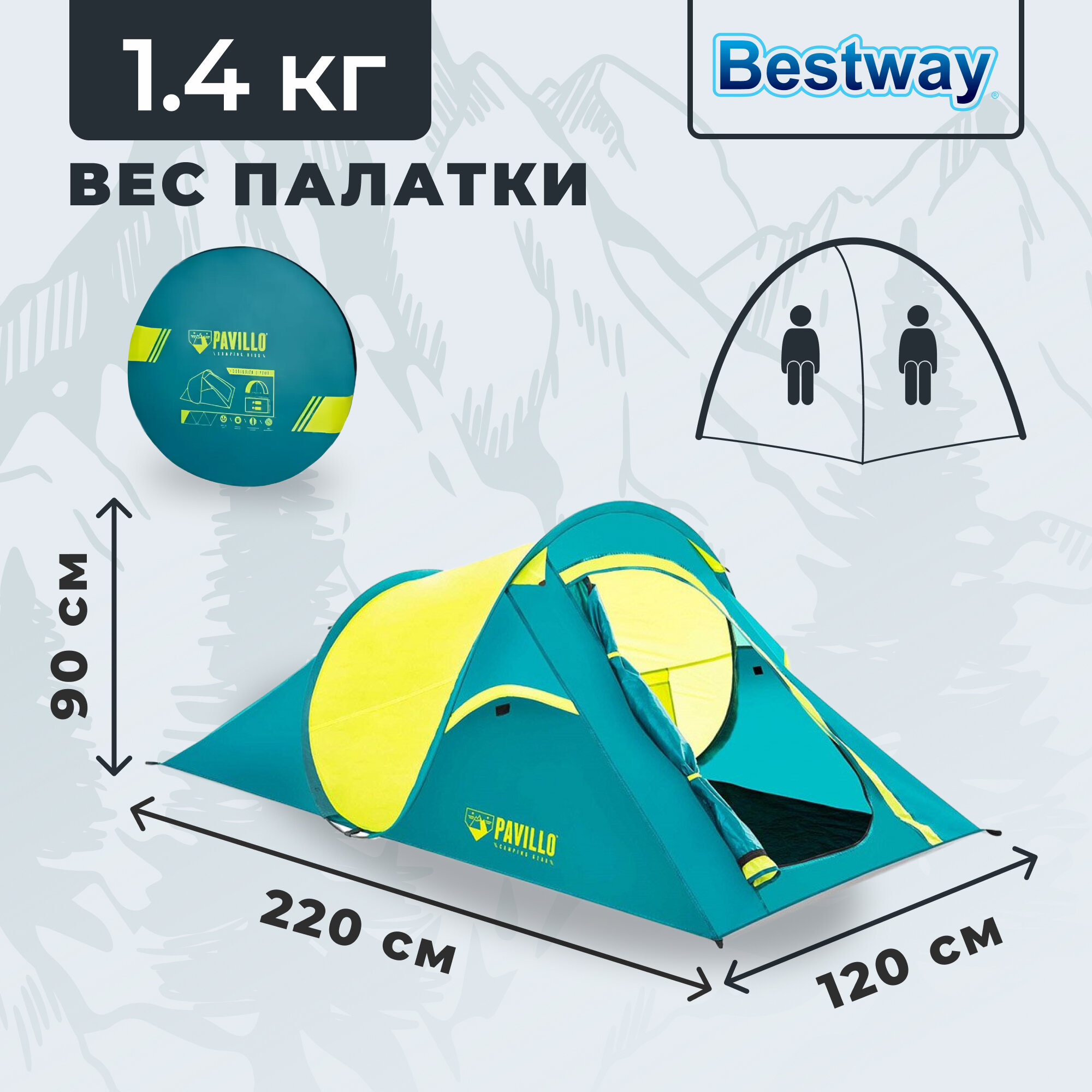 СохранитьПалатка трекинговая двухместная Bestway Coolquick 2 Pop-Up 68097, бирюзовый/желтый интересное: