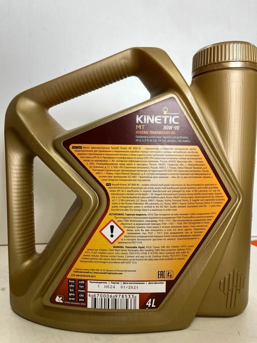 Масло трансмиссионное РосНефть 80W90 Kinetic МТ GL-4 минеральное 4 л