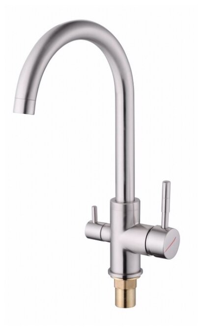 Смеситель для кухни (мойки) с подключением к фильтру для питьевой воды, высокий поворотный излив V-5154 цвет серебро Сатин