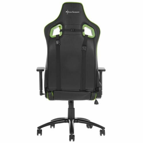 Кресло геймерское SHARKOON Elbrus 2, чёрно-зелёное (синтетическая кожа, регулируемый угол наклона, механизм качания)