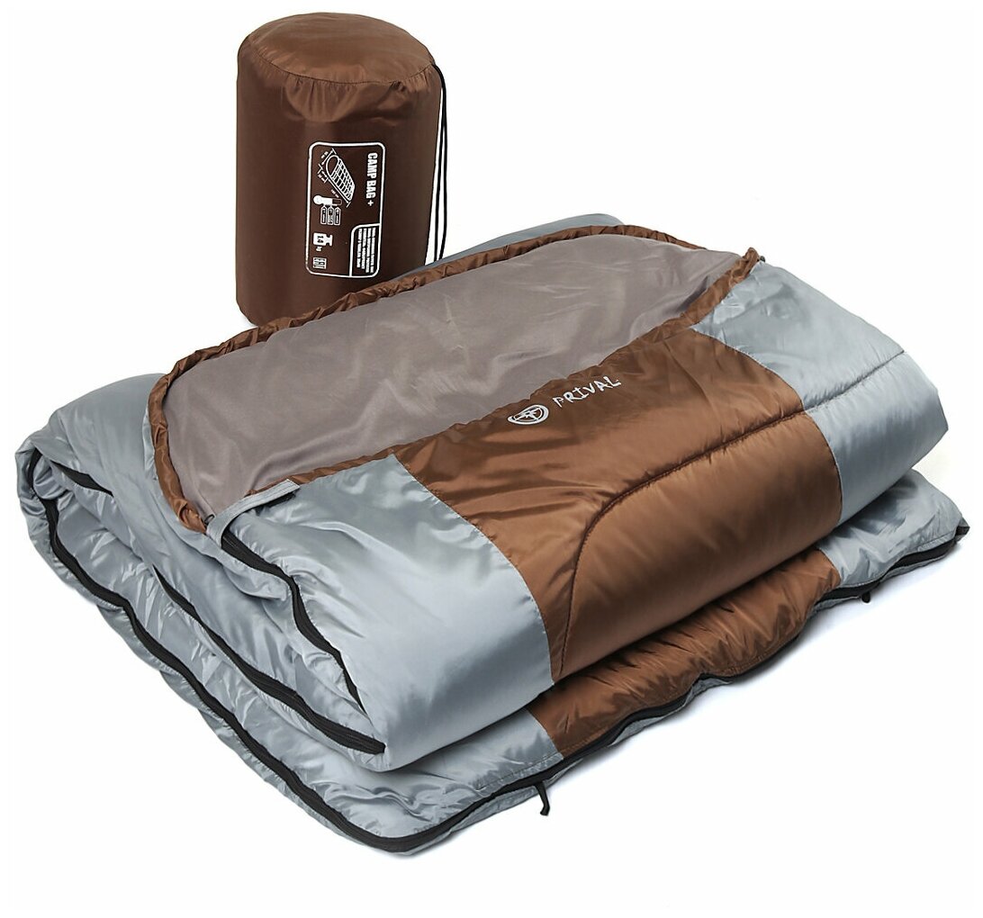 Купить Спальный мешок одеяло Prival Camp bag плюс серый/коричневый, t extr -5 °С, 220х95, молния справа