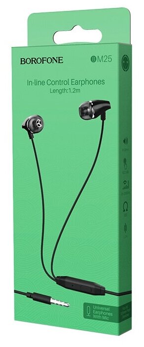 Гарнитура BOROFONE BM25 Sound Edge 3.5 мм, вставная, 1.2м (черный), шт BM25