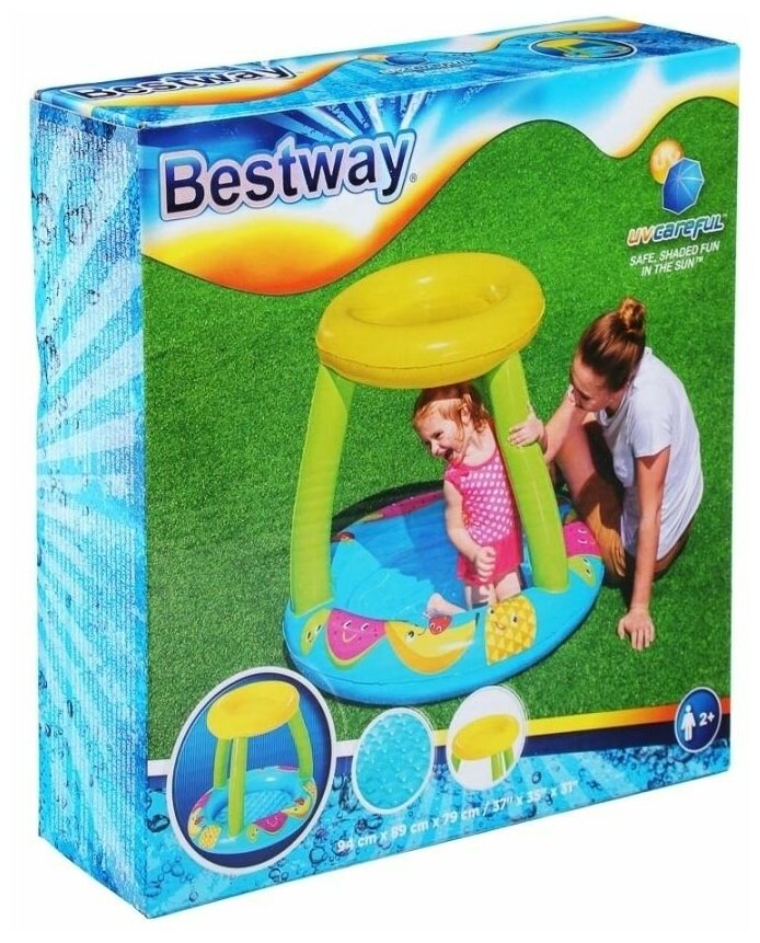 Детский надувной бассейн 94х89х79см BESTWAY "Фрукты" с навесом и надувным дном, 26л, от 2 лет, 52331