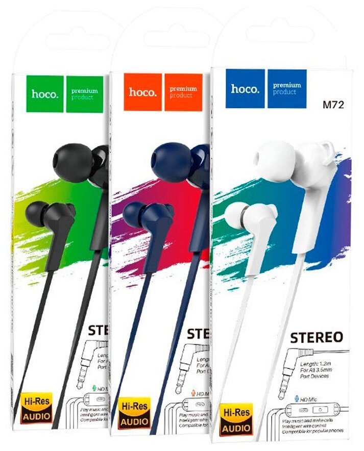 Проводные наушники внутриканальные Hoco M72 Admire, 3.5 Jack (черный), 1 шт.