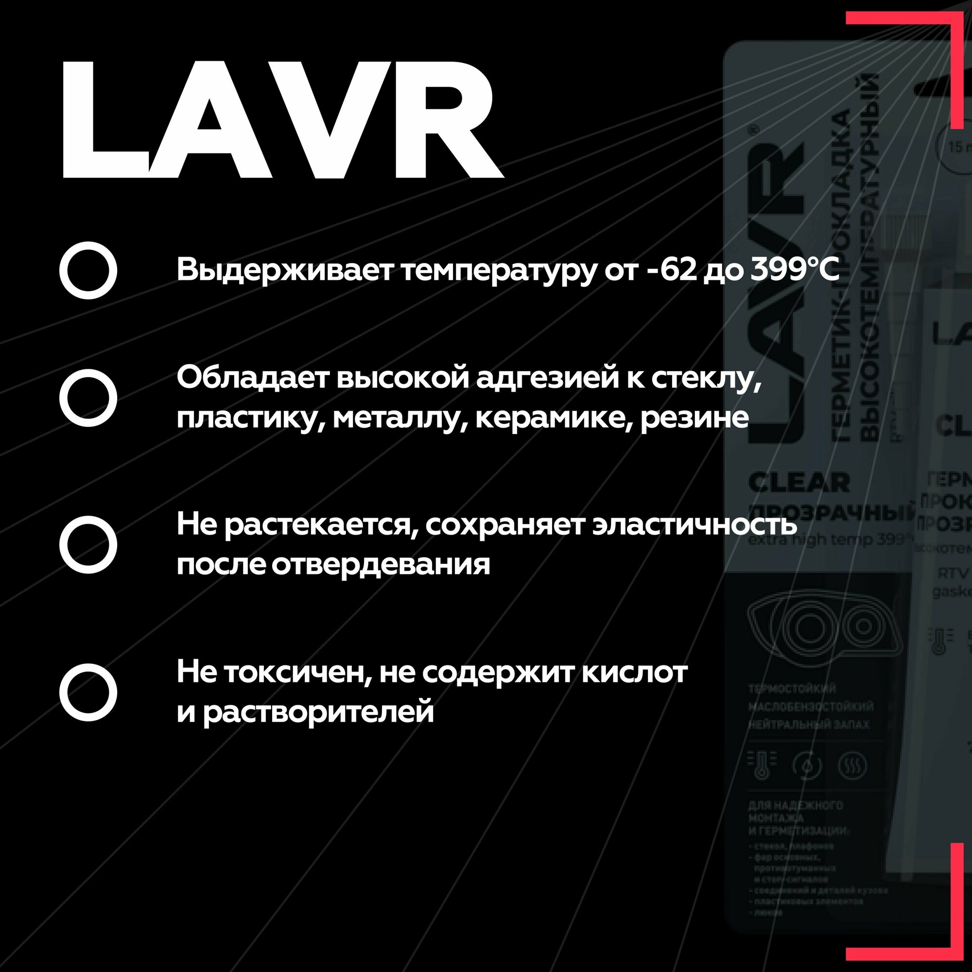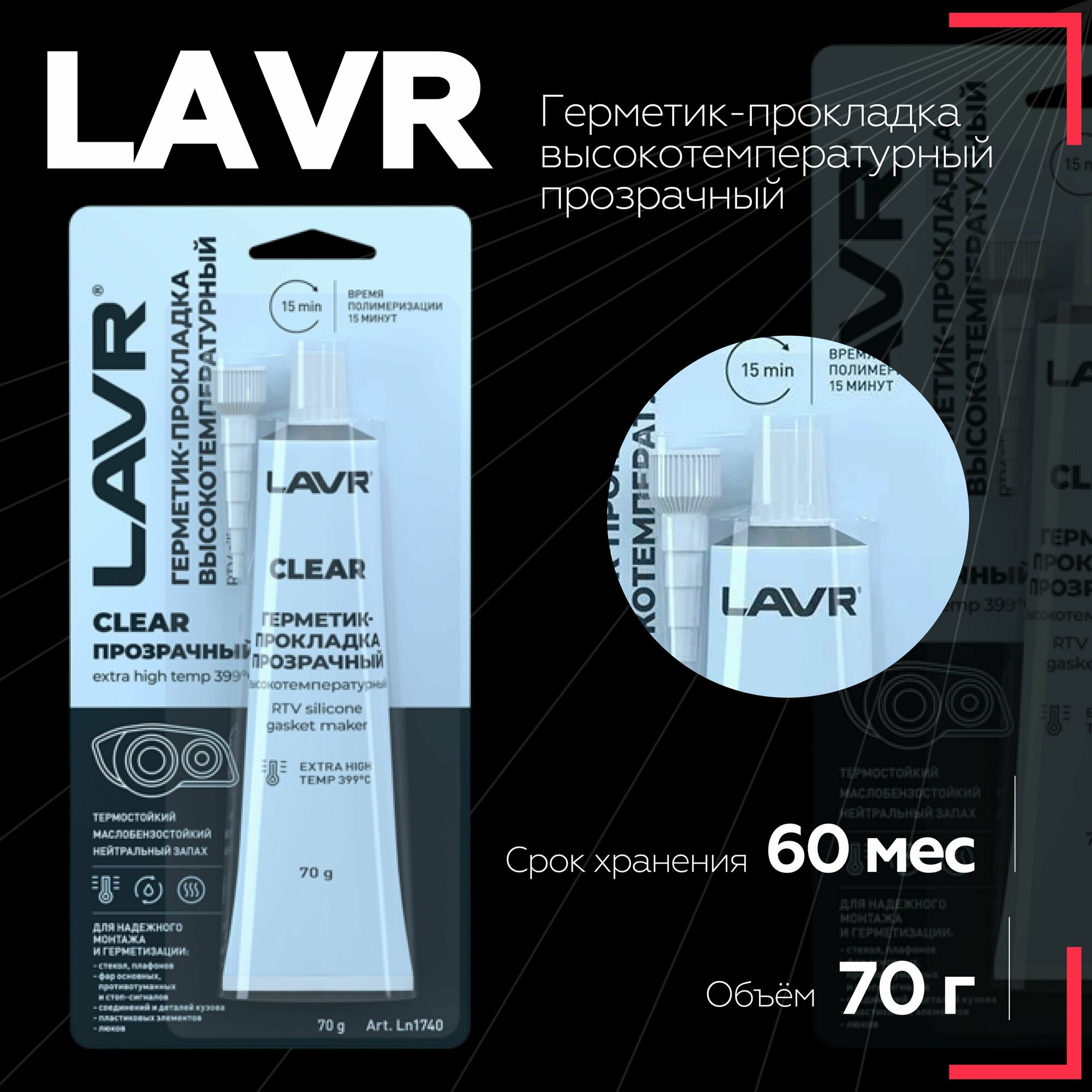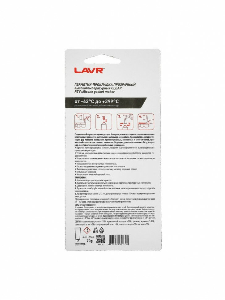 Герметик-Прокладка Прозрачный Высокотемпературный Clear Lavr Rtv 70г Lavr Ln1740 LAVR арт. Ln1740