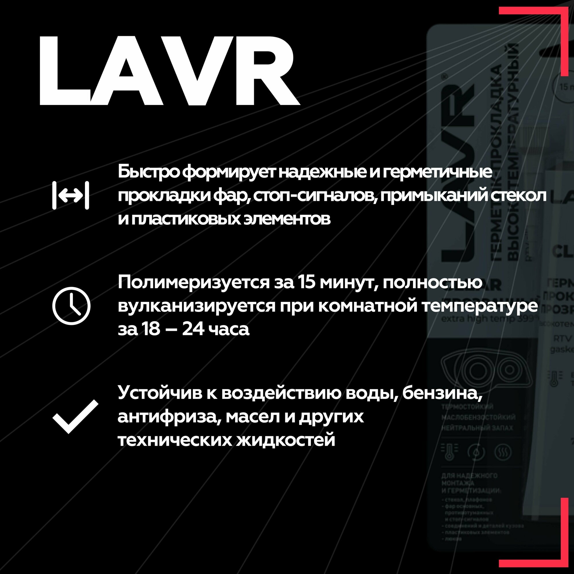 Герметик-прокладка LAVR прозрачный высокотемпературный 85г