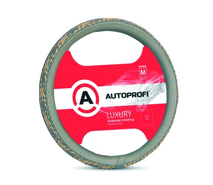 Оплётка руля Autoprofi Luxury натуральная кожа с плетением серая/бежевый M