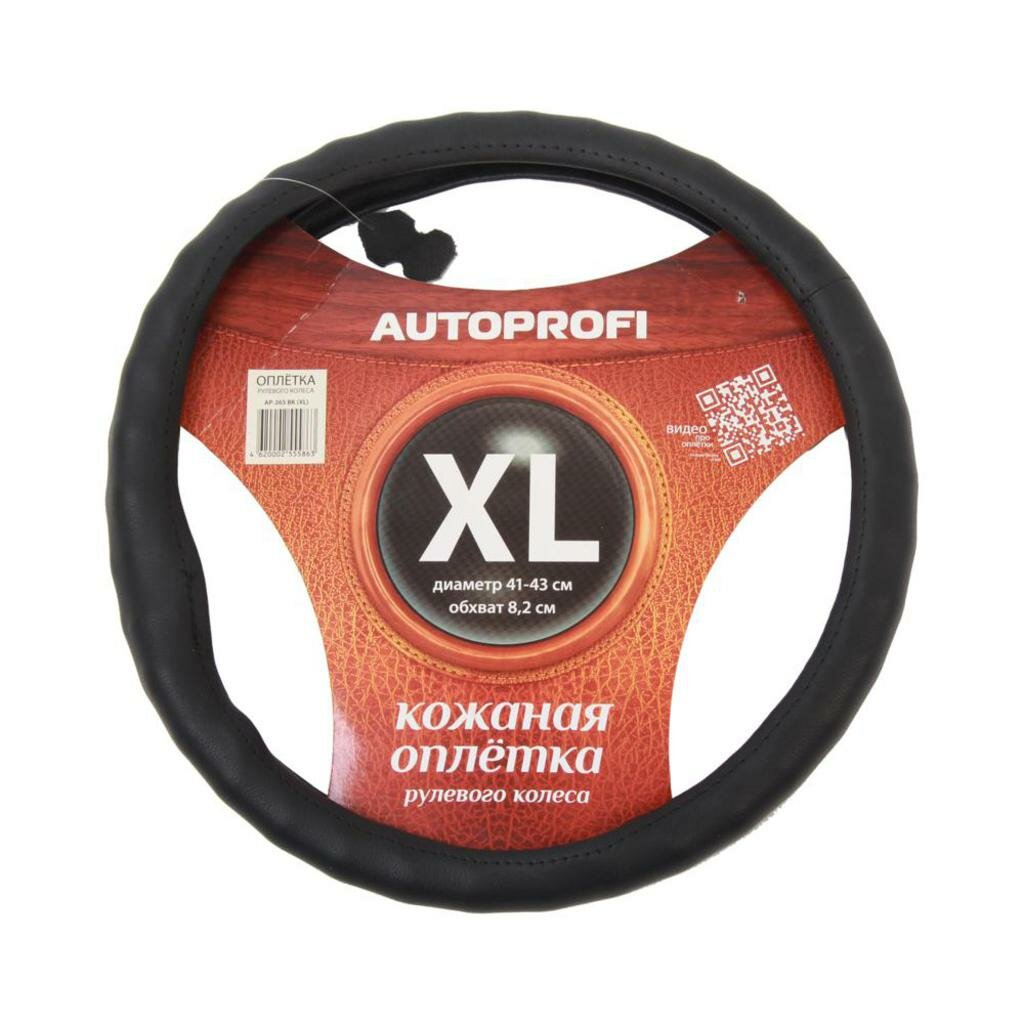 Оплётка руля AUTOPROFI AP-265 BK, натуральная кожа, ребристая чёрный, разм. XL,