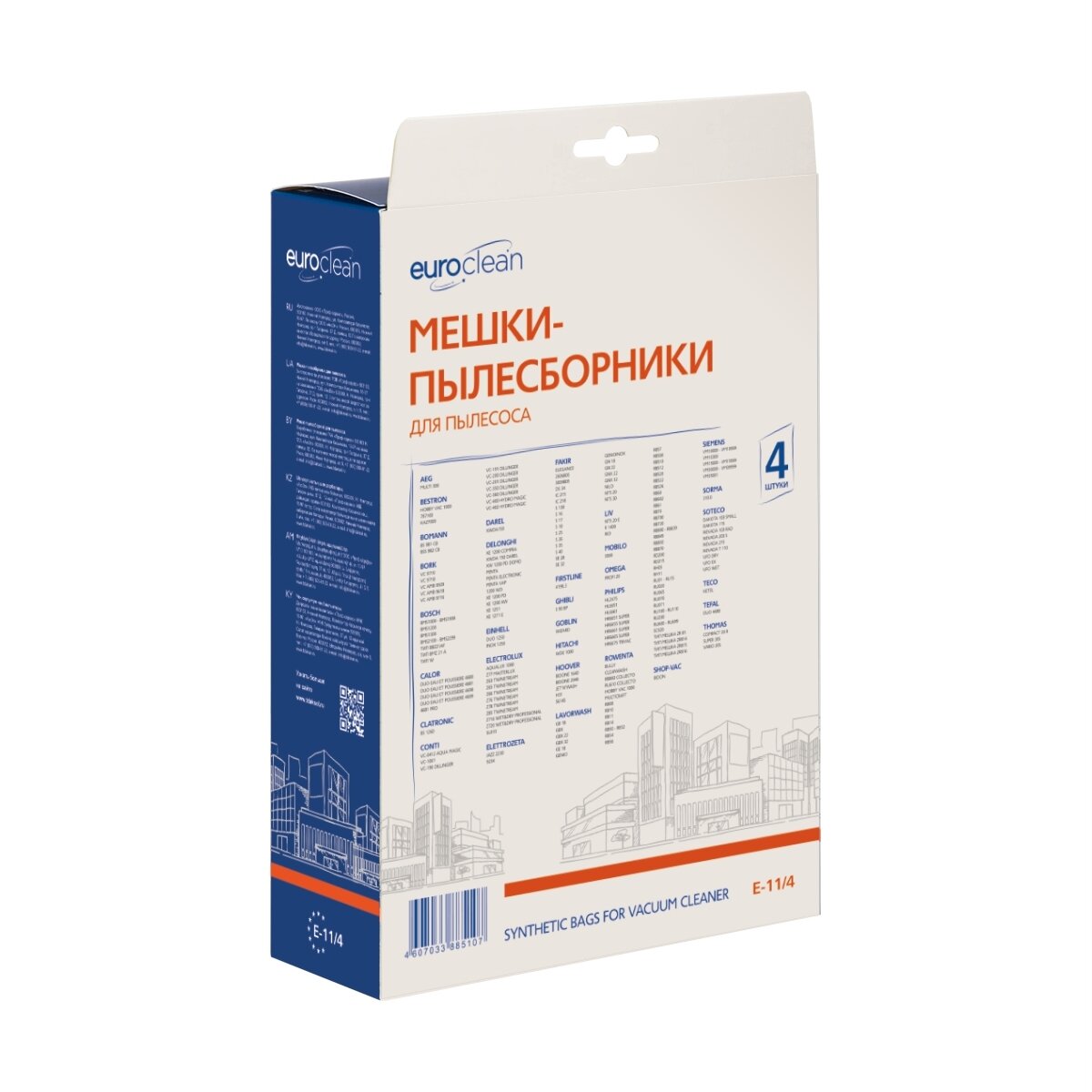 EURO CLEAN E-11 Многослойные синтетические мешки-пылесборники для пылесоса (уп. 4 шт)